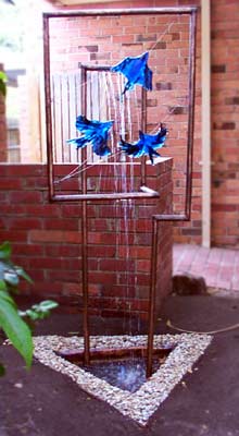"Dayspring" was first inspired by the sight of swallows flying around the tunnel created by the gold miners at Warrandyte. The work was built for the 2002 Melbourne International Flower and Garden Show which was held around Easter time. Since I wanted to convey the vigor of the European tradition of springtime Easter with the Australian image of a river and birds I called the work "Dayspring" to echo the Easter imagery.