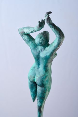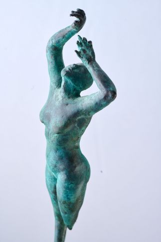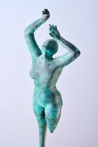 These sculptures explore the feeling of sinking. The moments in life where you feel as though you could simply stop and disappear, sink into the earth and cease existing or to exist elsewhere. They are representative of when time and life seemed to both slow and speed up all at once. These pieces are also inspired by the materiality of bronze, with its paradoxical blend of solidity and liquidity. I wanted to push the material to appear soft and liquid but also employ the sturdiness of the material to support the delicate structural shapes of these sculptures. The balance between these themes is further represented in the balancing element of ‘Descending’. Though It isn’t obvious from looking at it, the figure in this sculpture is balancing on the point of the spiked stand. To me each figure represents a different will. While the male figure willingling melts and wishes to disappear it is thrust up into the world, unable to wholy melt away. While the female figure reaches out to remain here while being pulled down into oblivion. Both figures fighting for what the other wishes to lose. These works represent the struggle between presence and absence, solidity and dissolution.