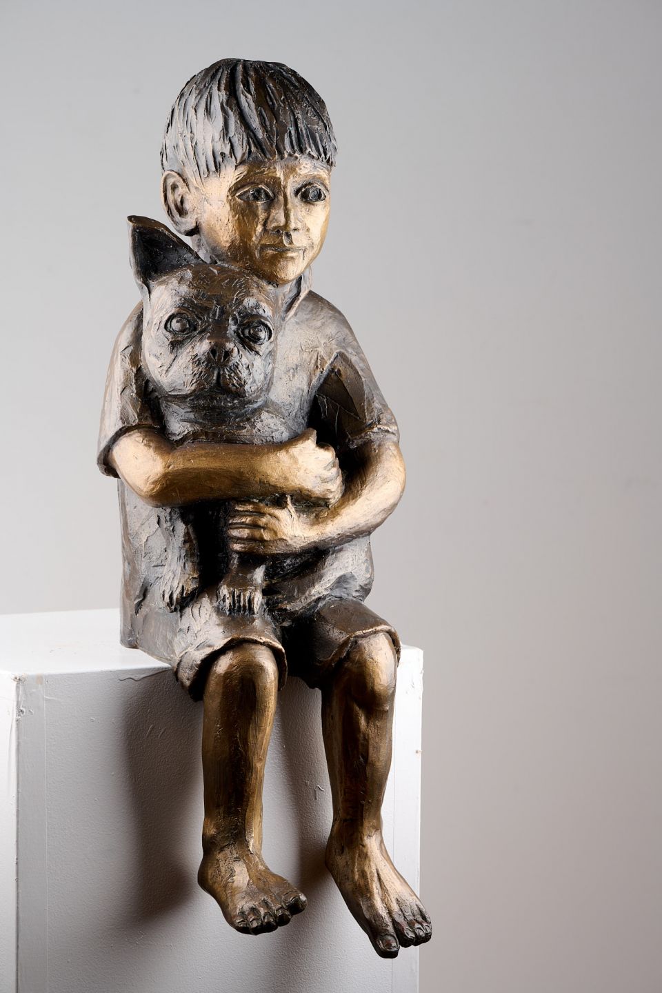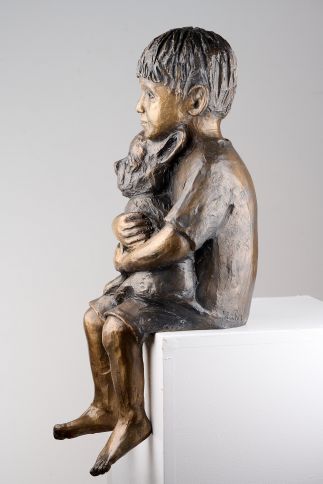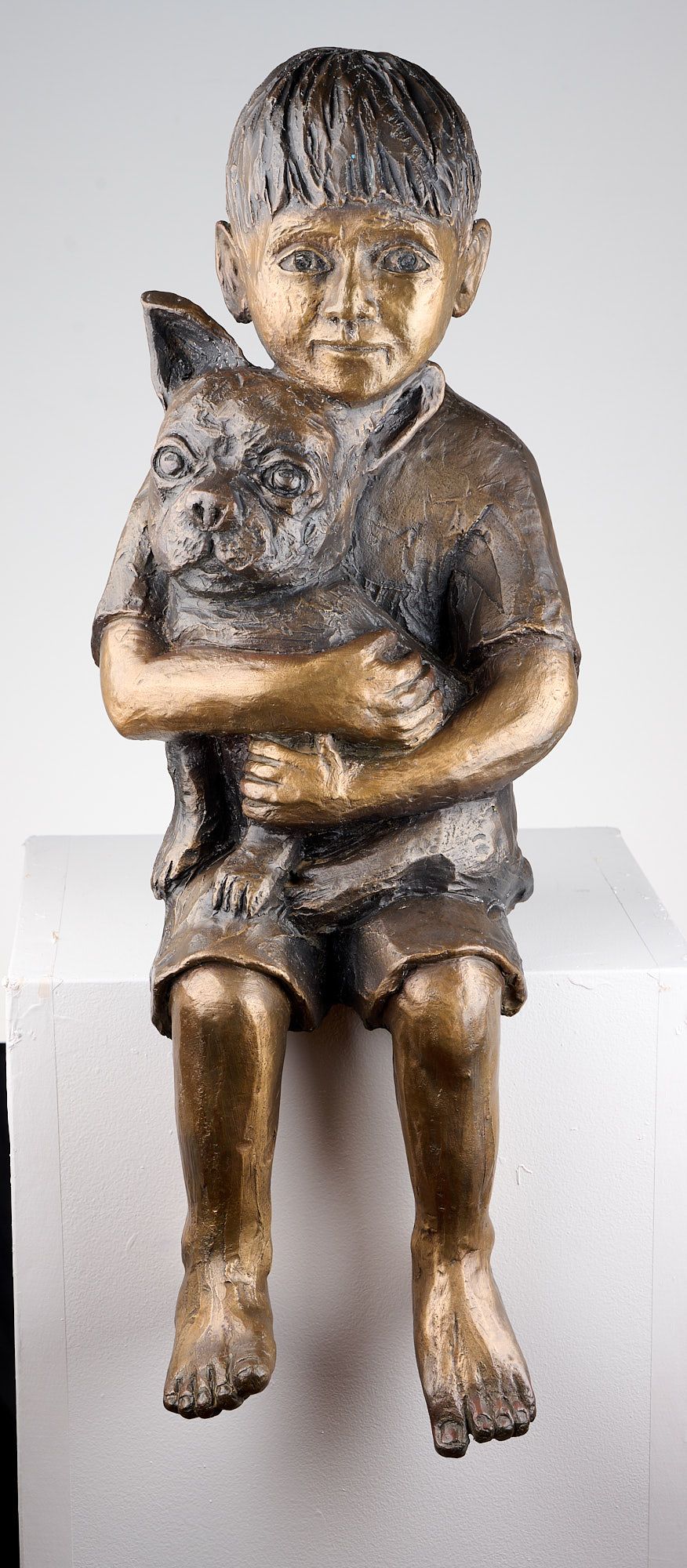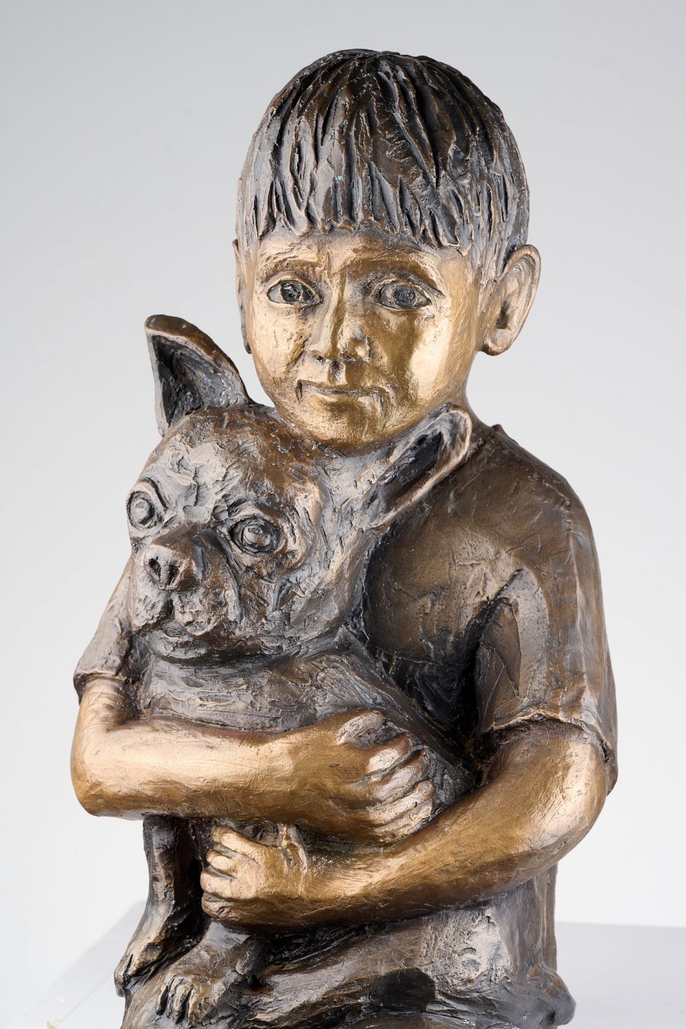 The sculpture explores the unconditional love and trust between the young boy and his dog.