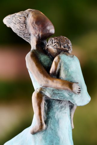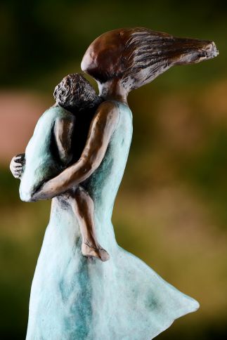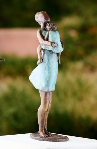 This stunning bronze sculpture showcases exceptional skill and technique, capturing the emotional resonance of the bond between mother and child. The artist’s nuanced use of form and material elevates the piece, employing the power of suggestion to create an evocative narrative. Through subtle detailing and expert craftsmanship, the sculpture allows the viewer to connect emotionally with the piece, as the form seemingly transcends the physical, creating a greater sense of context and universal story.