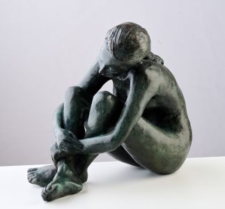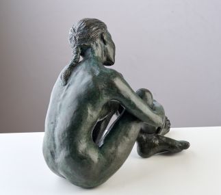 ‘Dreaming Girl’ is about the connection between the multisensory experience of water with the body. This work was drawn from the memory of being a teenager in my friends front courtyard on a warm Queensland afternoon surrounded by verdant green foliage, the sound of a water fountain and a summer rain storm. Bronze with a cool black and faintly green patina was chosen as it evokes the idea of water.
