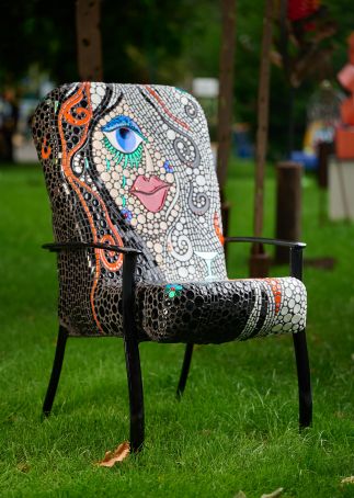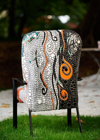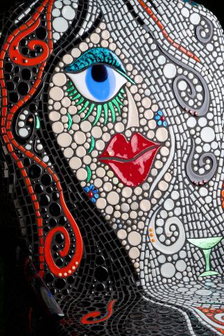 - Media: Metal, fibreglass mesh, concrete and kilnformed glass mosaic tiles