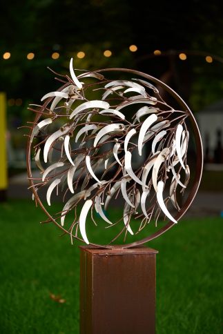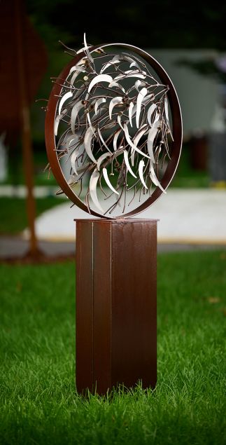 Gum Leaves Entwined is piece which allows the viewer to see gum leaves through a pothole or circle. Capturing the beauty of the Australian bush and freezing it in time.