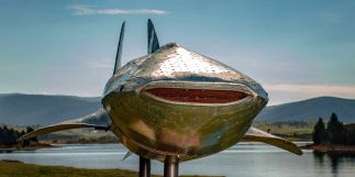 Gypsy of the Deep, the whale shark is a mystical sea creature, a lot about its breeding is still unknown today. Found throughout tropical and temperate waters of the world, including Ningaloo Reef in Western Australia were many dive with the beautiful whale shark. The species is considered endangered, due to its long life span, catch loses, and vessel strikes. The frame was constructed from an old barn that had blown over in a mini tornado, so some of the structure was pre-bent. The exterior is constructed from galvanised sheet steel, with stainless steel rod. It also has 40m of blue and white led lights inside which makes it look like it's breathing at night.