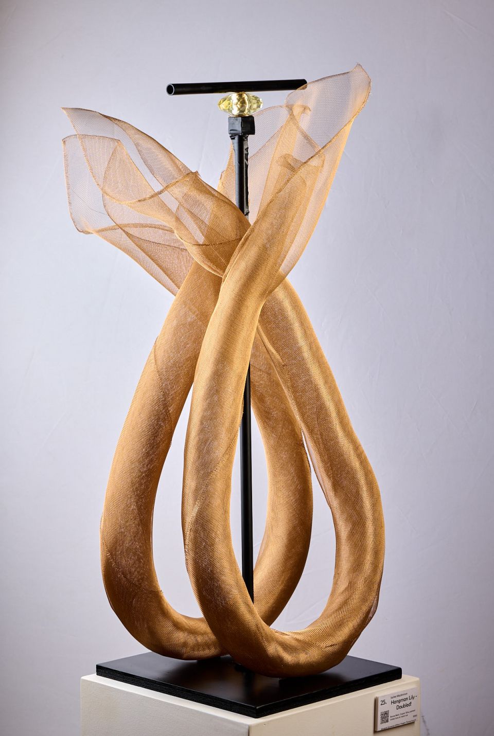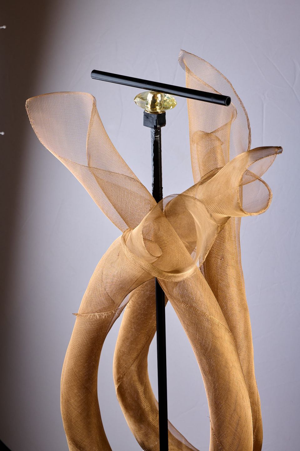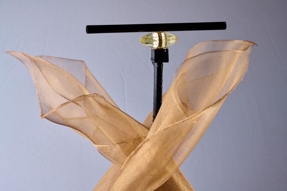 - Media: Bronze Mesh, Copper Wire, painted timber base & metal rod.