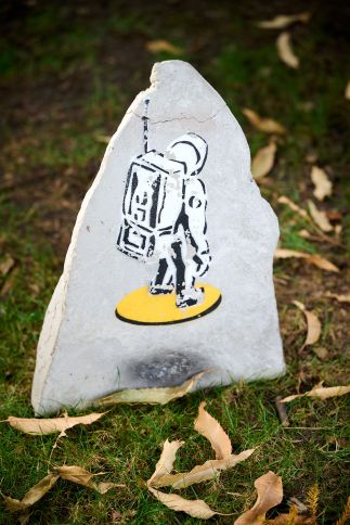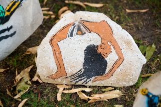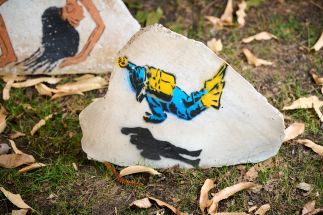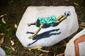 The artist rejoices in the excavation of forgotten lands to surface layers of the past. Fragmented history embedded in rocks, like figures of forebears in public hidden caves, characters swap walls for ostrakon ready to be found in the archaeology of times to come.