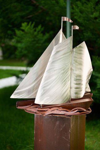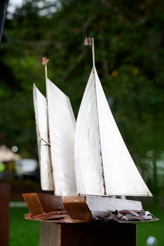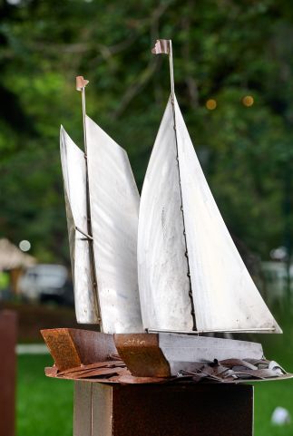 Sailing Into serenity was a sculpture made to capture the movement and skill of a sailing race. I wanted to express movement in an object that is inherently still. Making the sails in stainless to capture the colour of the sails and the pressure of the wind on them.