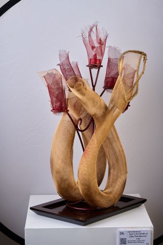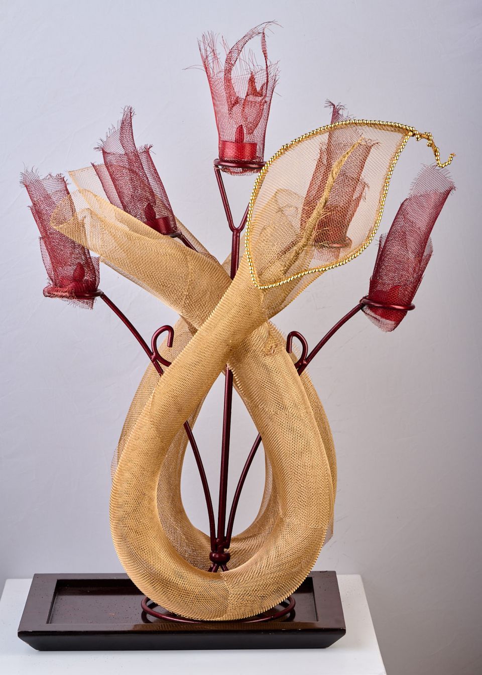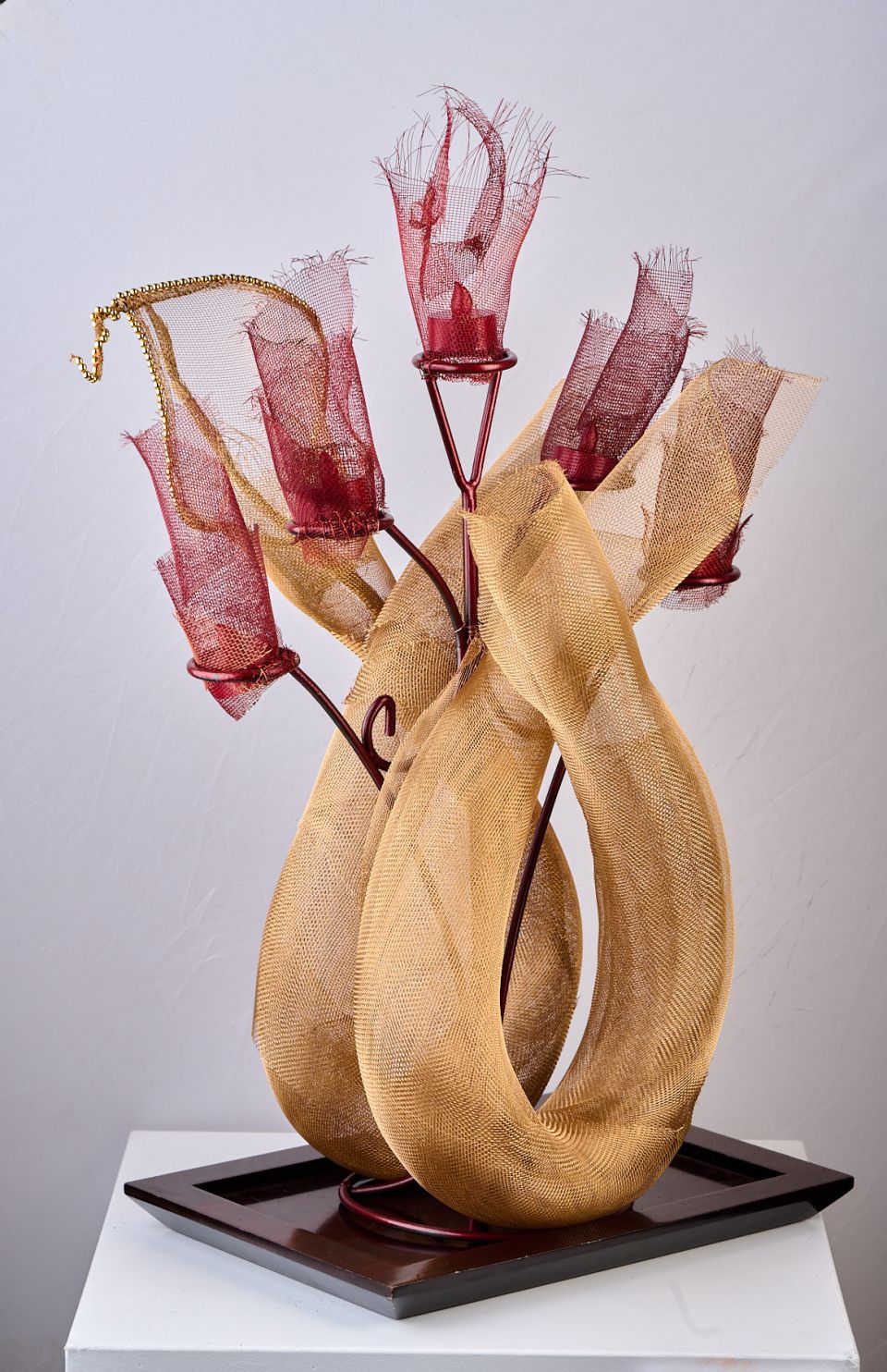 Bronze Mesh, Copper Wire, Metallic Paint, Steel Base.