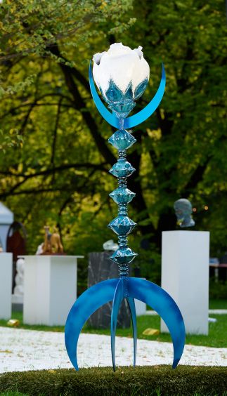 Triffid is an engaging sculpture that demonstrates expertise in the use of steel and ceramic materials. Through its thoughtful design, the piece challenges the viewer to reflect on our relationship with the digital world and the natural environment. The artist has created a piece that not only commands attention but also invites deeper contemplation on the modern age’s complex interplay between technology, nature, and human interaction.