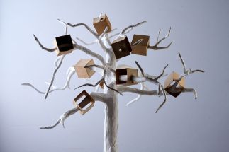 The conception of this piece began with the thought of how we frequently put people in boxes while also disliking being put in a box. The actual design as well as the meaning grew and morphed, to represent how we try to put God in a box, but that He is far too big for our boxes.