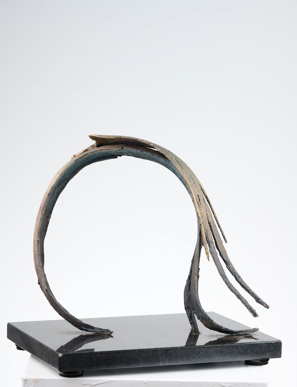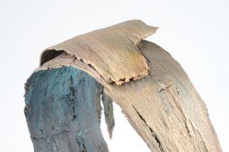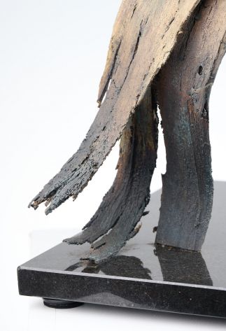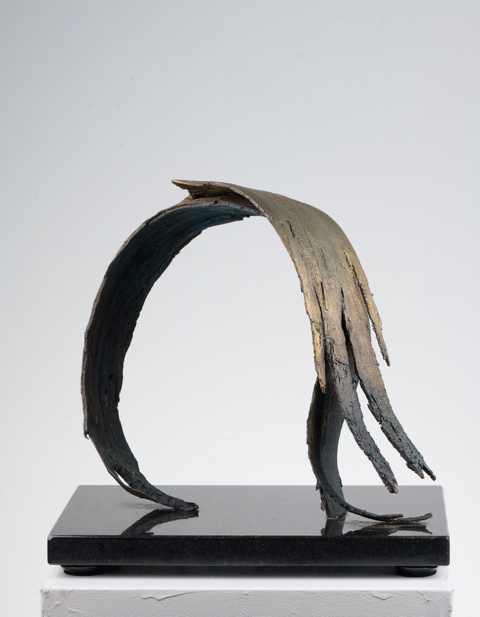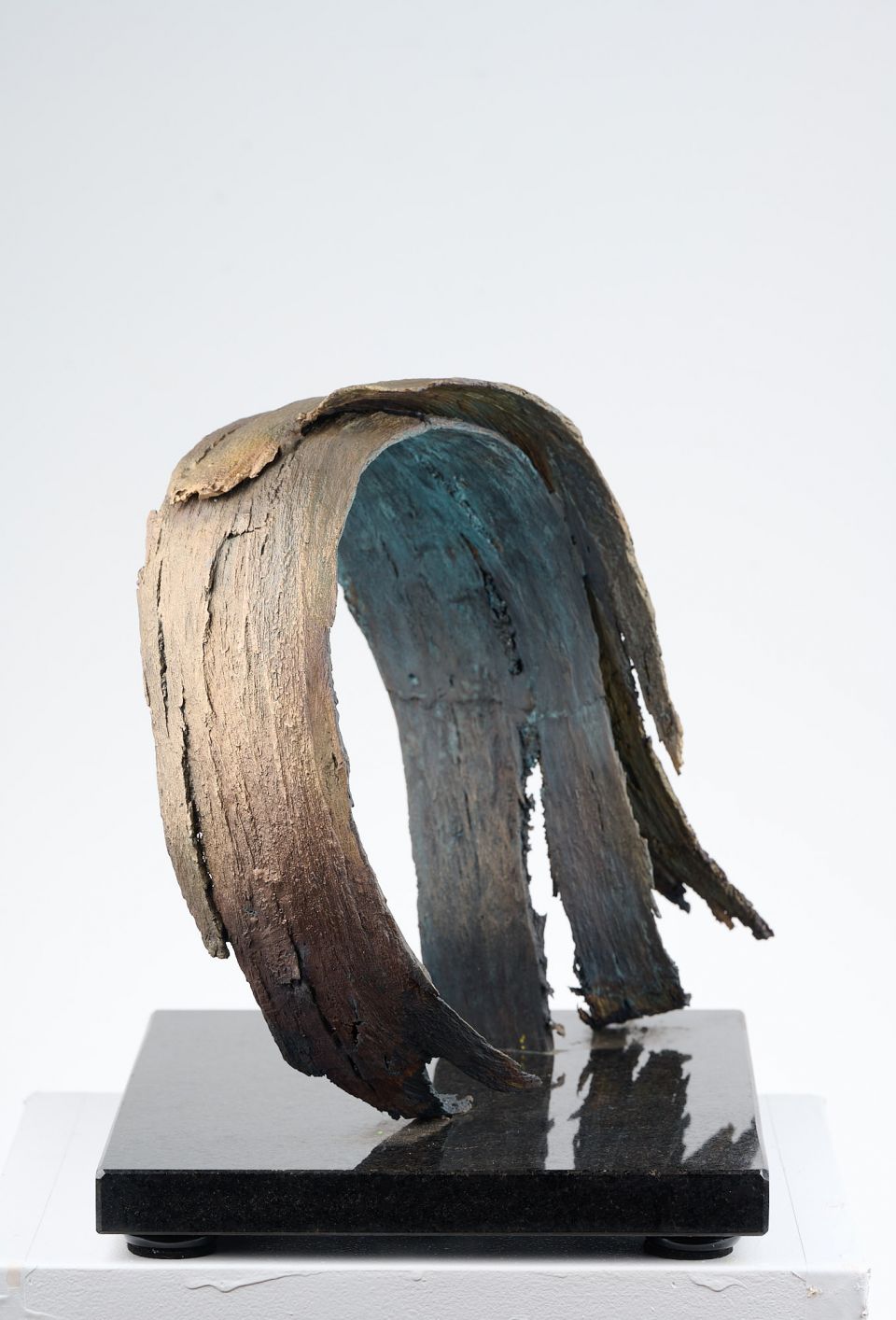 The bronze sculpture originated as discarded bark from a yellow box gum found on my property , a complex process by immersing the bark sections into liquid clay forming a shell around the bark which is then burned away to form a cavity for molten bronze to be poured into This work invites reflection on presence and loss, the negative space becomes as conceptually significant as the now existing positive form.