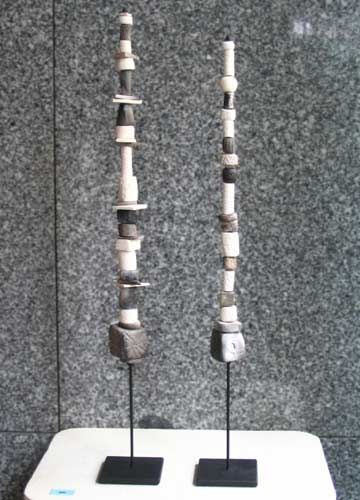 Sold as a pair (height 71cm/75cm). Sawdust fired.