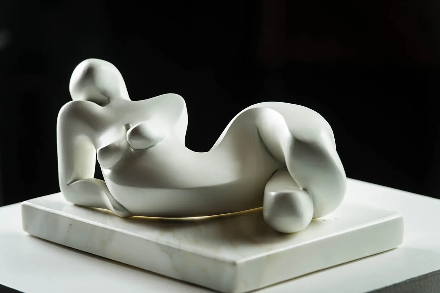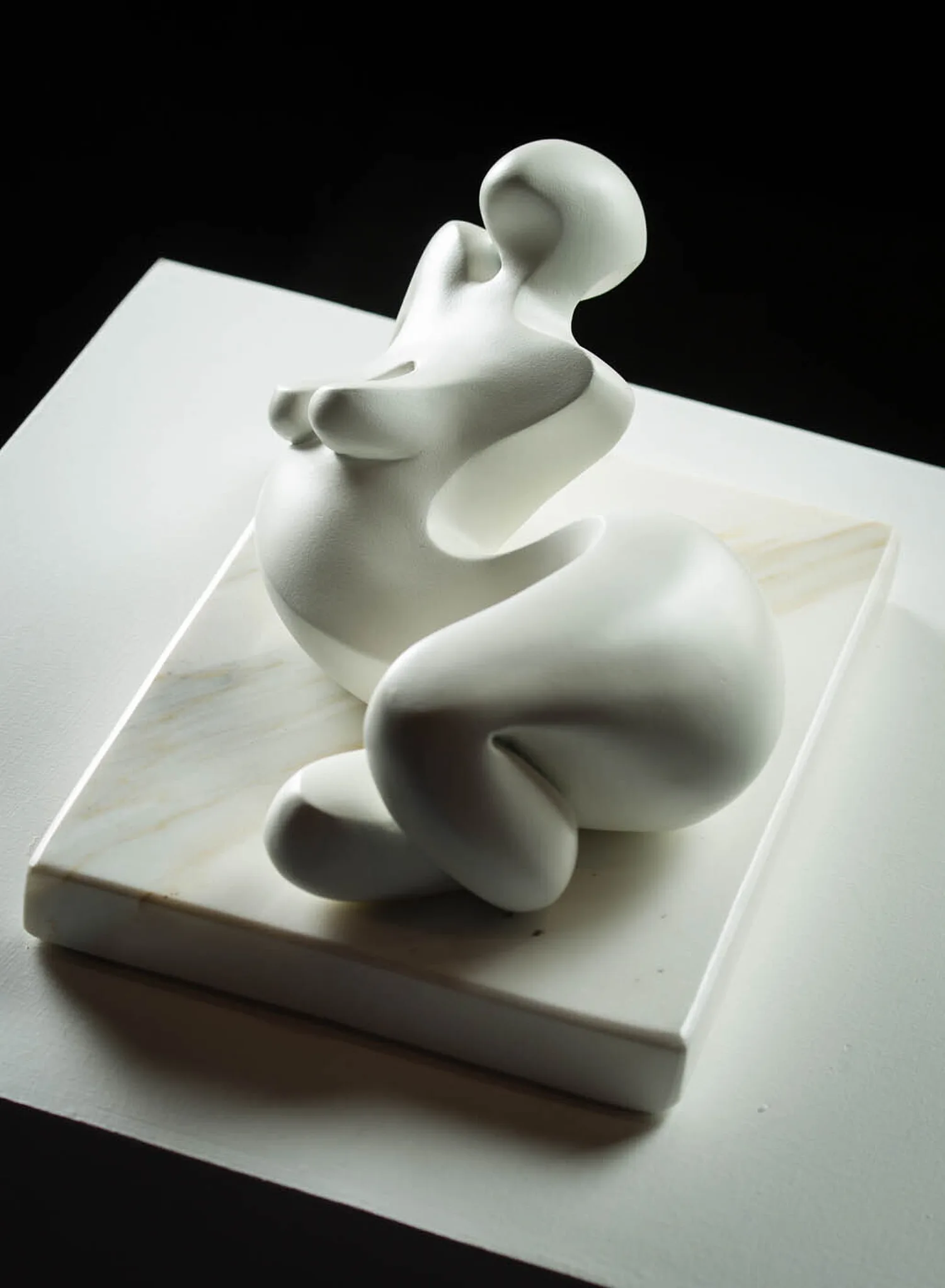 My abstract figurative sculpture in plaster and stone are inspired by the natural sensuality and curvature of the human figure. I like to convey an evocative mood or emotion, typically found in the line and form of the female nude.