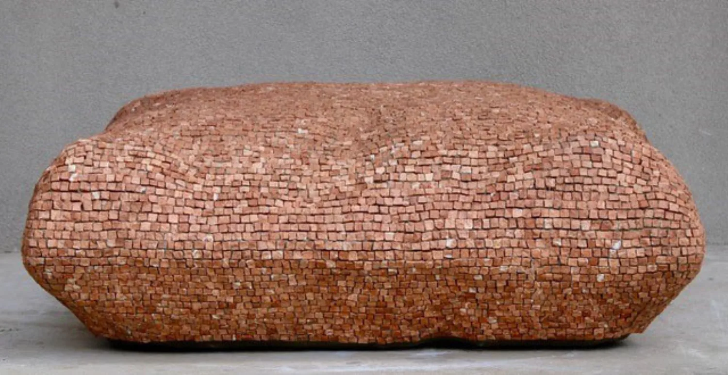 The ‘Cloud of Joy’ was made to reverse its role as hard weighted material and transform into one of float-like weightlessness. The artwork becomes a functional seat and resting place, as it settles and relaxes into the landscape. Its form can remind one of a cloud or pillow.