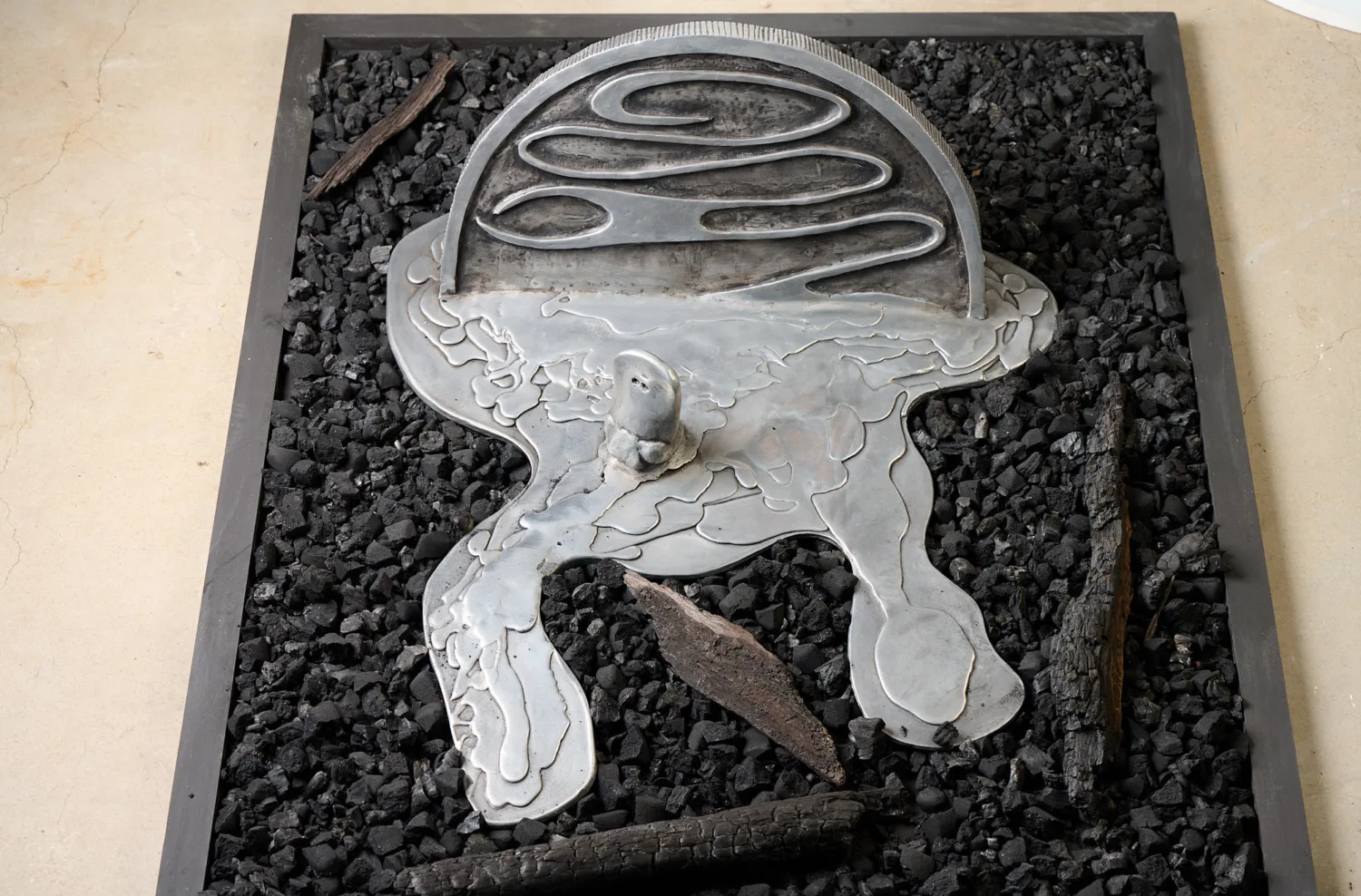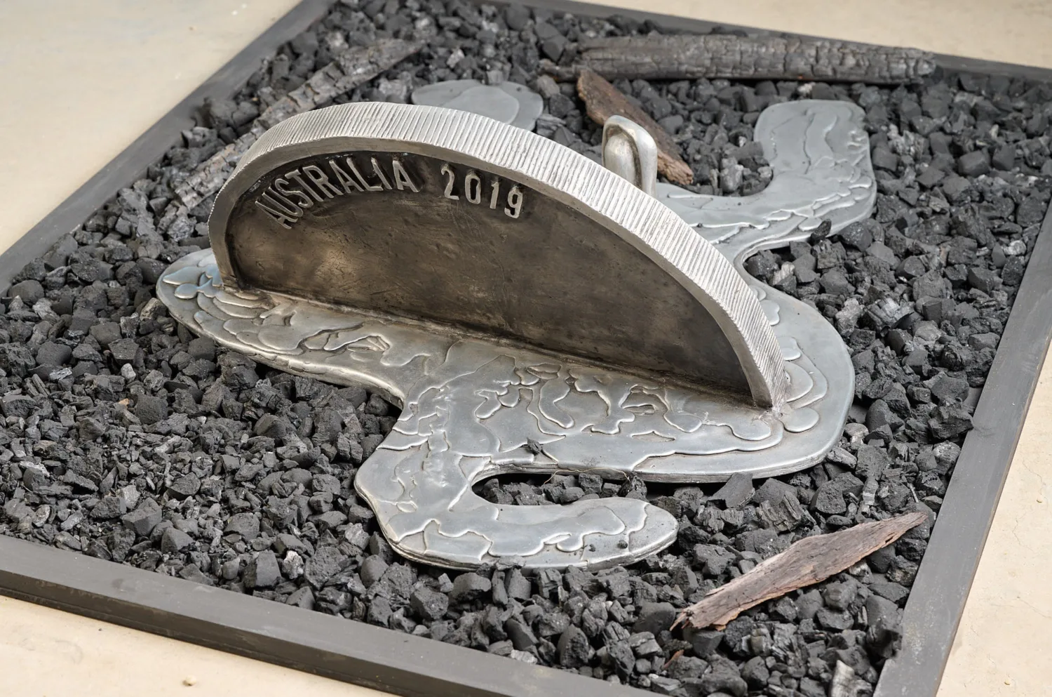 | Media | cast aluminium, bushfire burnt logs, coals. |