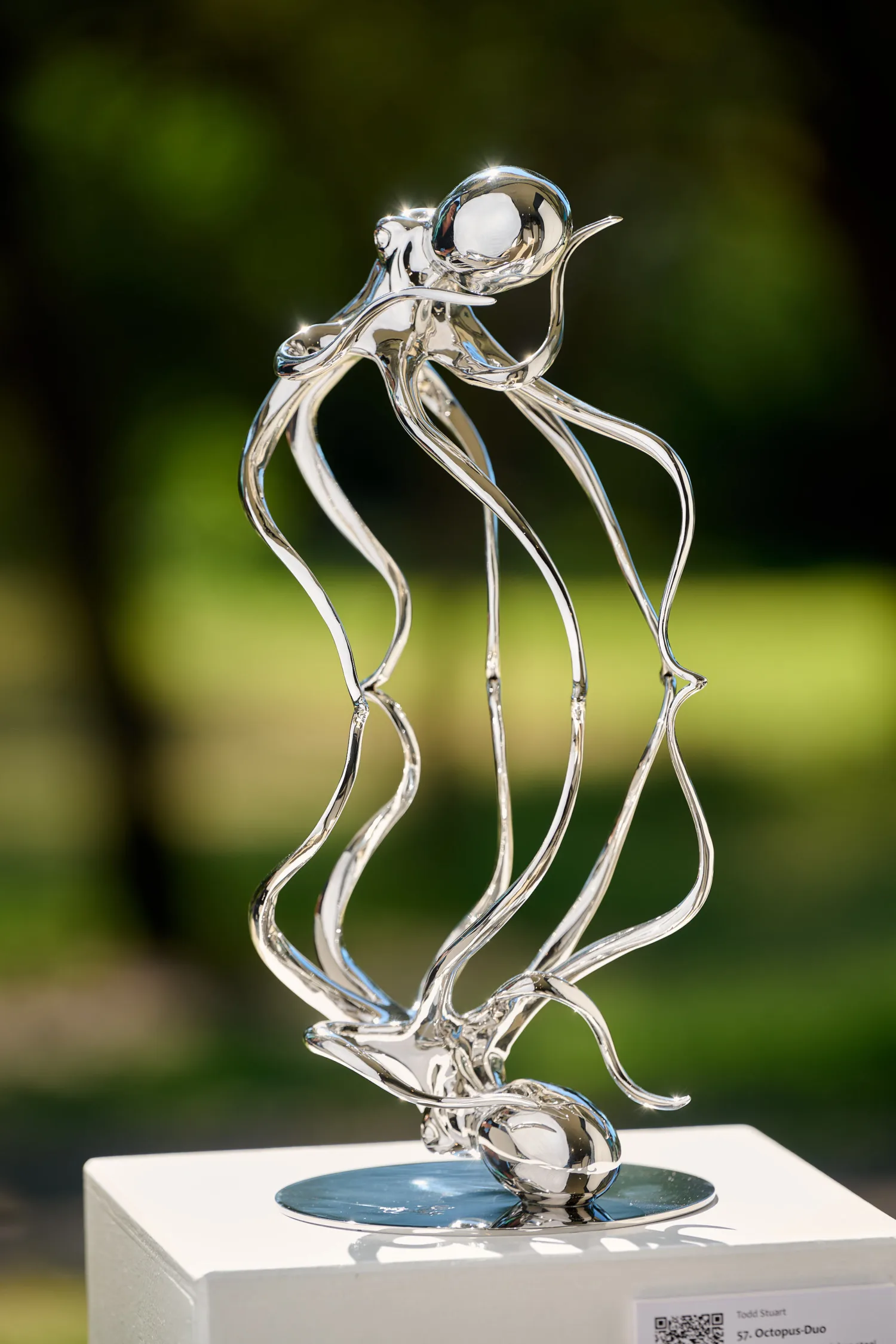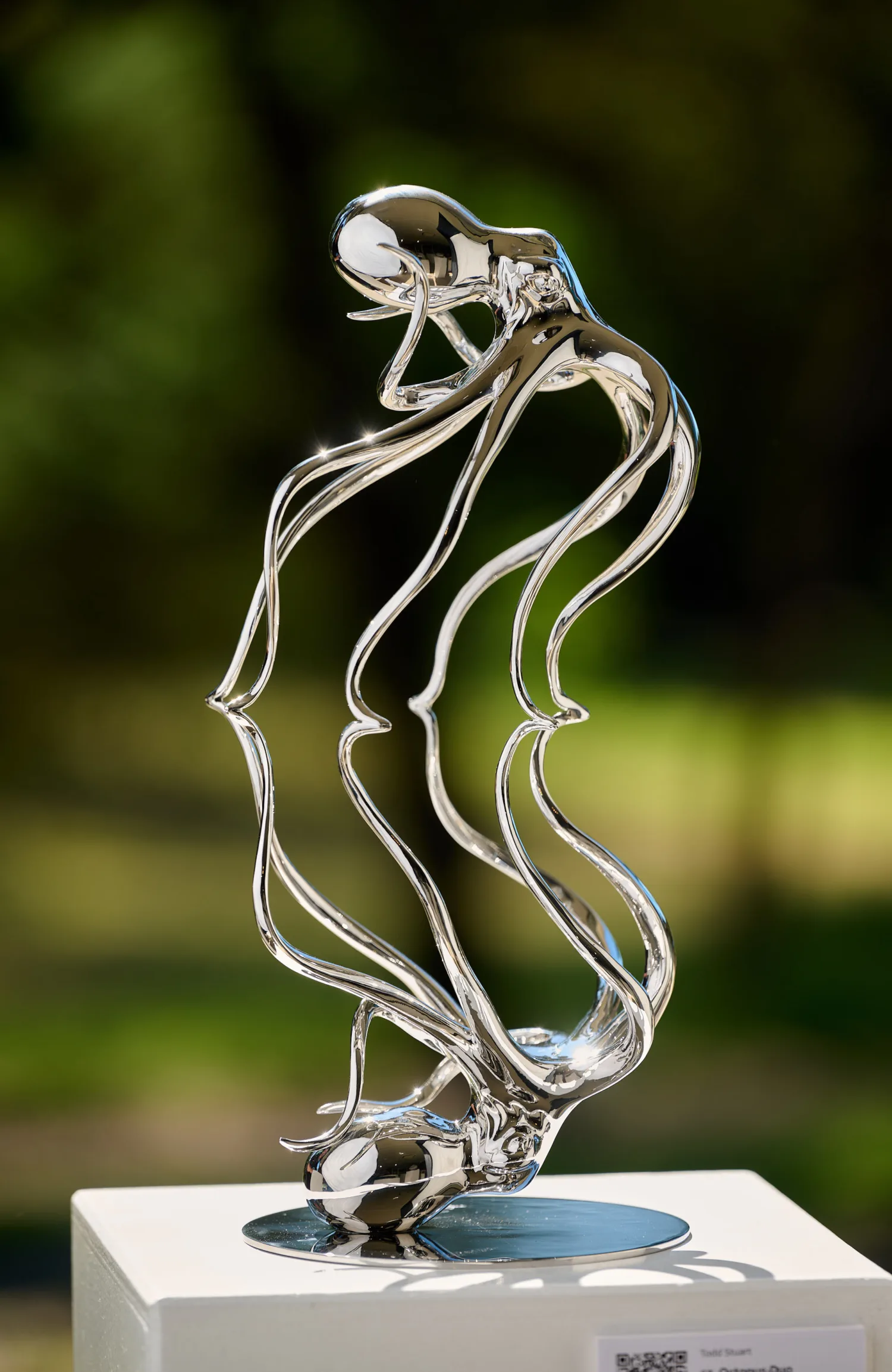 Meet "The Octopus Duo," a mirror-image sibling that mirrors perfection. One atop the other, they dance in harmony, set on a mirror-polished stainless steel plate, reflecting infinite dimensions. A tribute to the sea's wonders, each tentacle embodies resilience and fluidity, a testament to life's balance. For collectors, it's a symbol of dualities and profound connections. For sea enthusiasts, it's an emblem of endless fascination, revealing new perspectives with each gaze. "The Octopus Duo" transcends art; it's a legacy, an emblem of our enduring connection to the depths. Immerse yourself in its narrative and the sea's timeless allure.