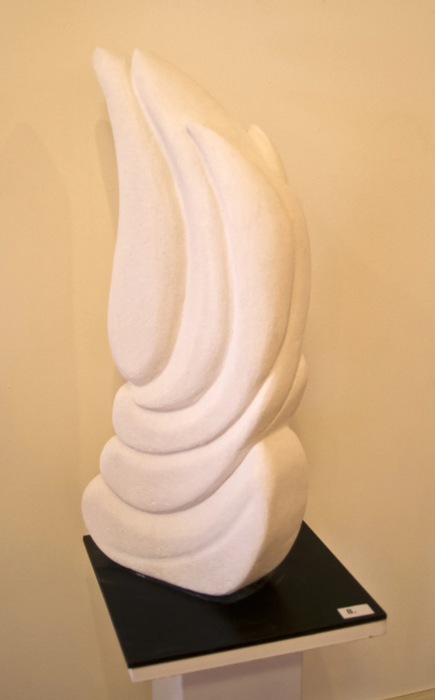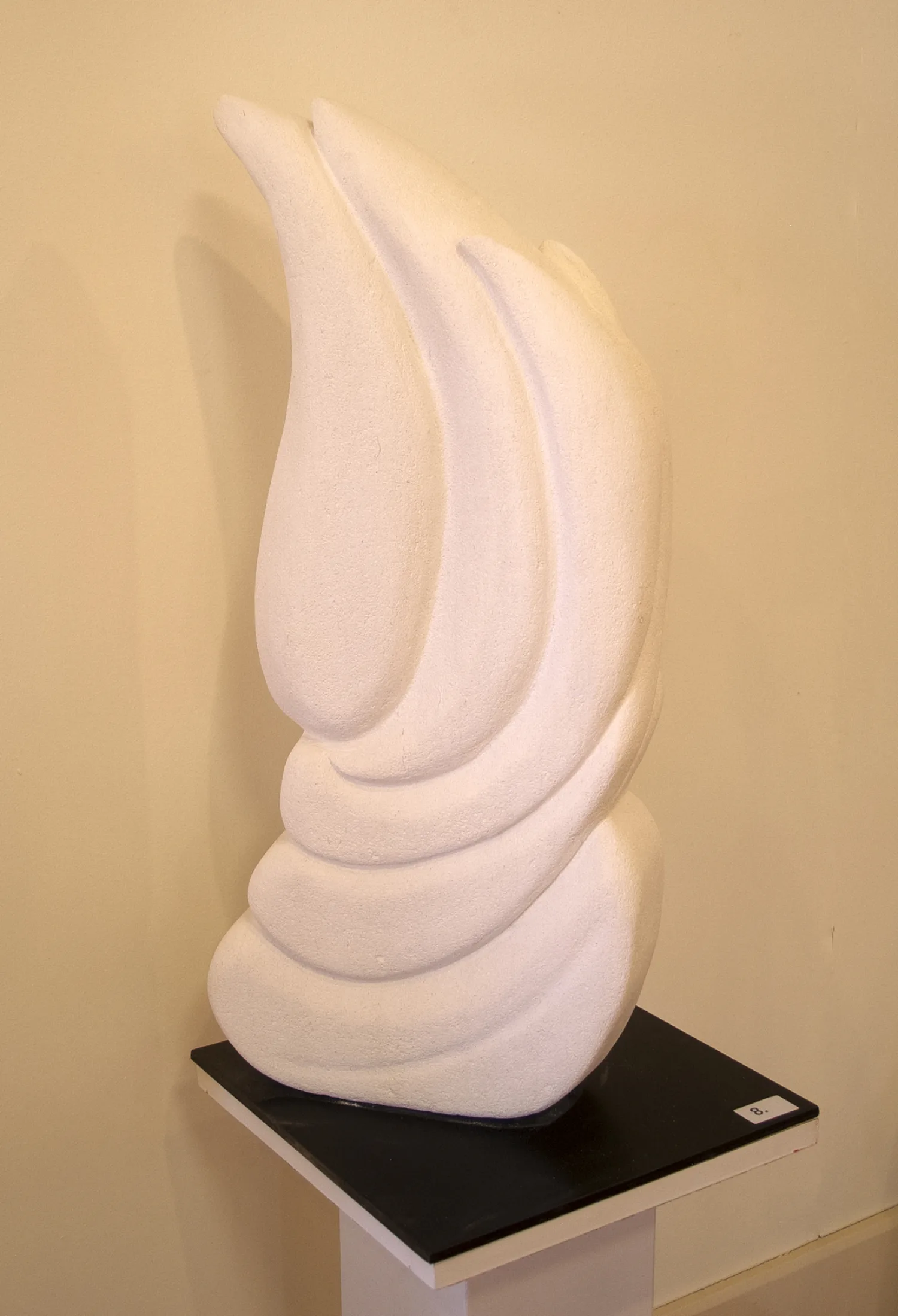 Ten years ago my interest in stone carving was inspired by a visit to Oamaru in the South Island of New Zealand. There I saw marvellous sculptures in the local limestone. On my return I located a source for Mt Gambier limestone and developed my own style incorporating the environment of mountains and sea so close to my heart. The challenge this soft stone throws at you stimulates lateral thinking processes: some creations alter considerably due to ancient shells appearing or simply cracking away, leaving a gaping hole. I