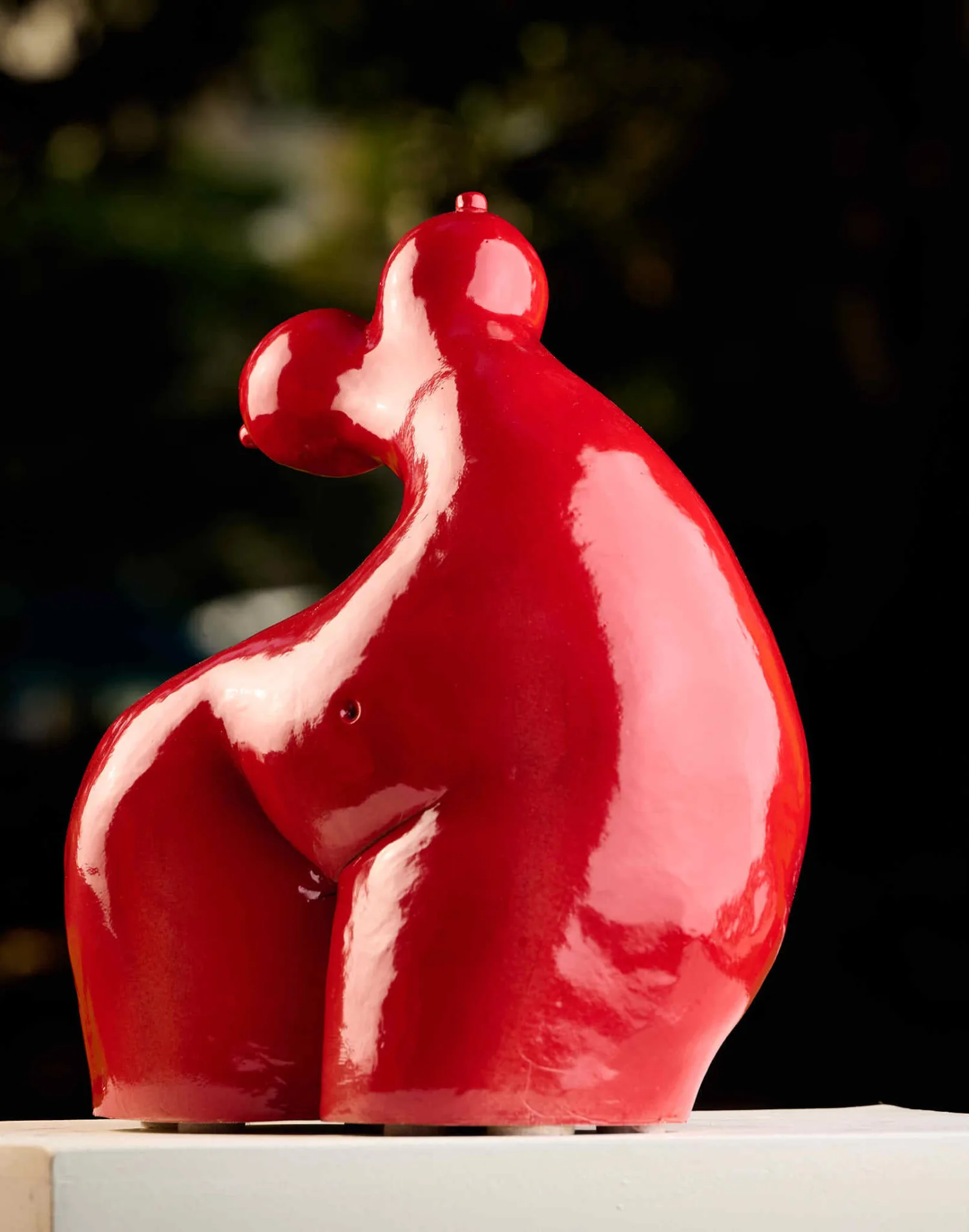 `Red Ripe `is the unique glazed and fired version of `Ripe`, a first edition bronze. This series is an exaggerated abstraction of the female form emphasising voluptuousness and sensuality. But it is also a continuation of the symbolism of the ancient `Venus of Willendorf`, the first sculpture to depict women's connection to their bodies as the generators of birth and human life.