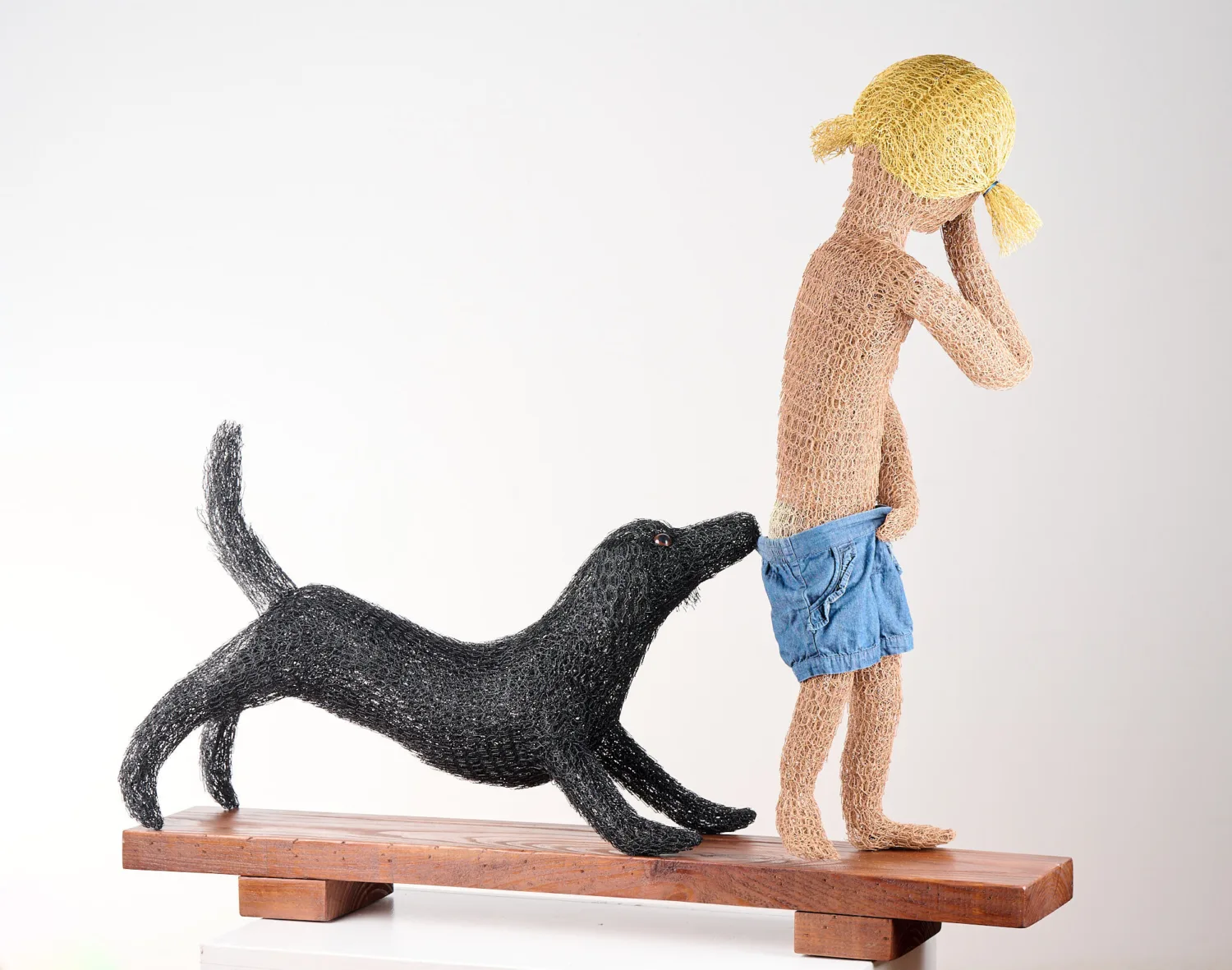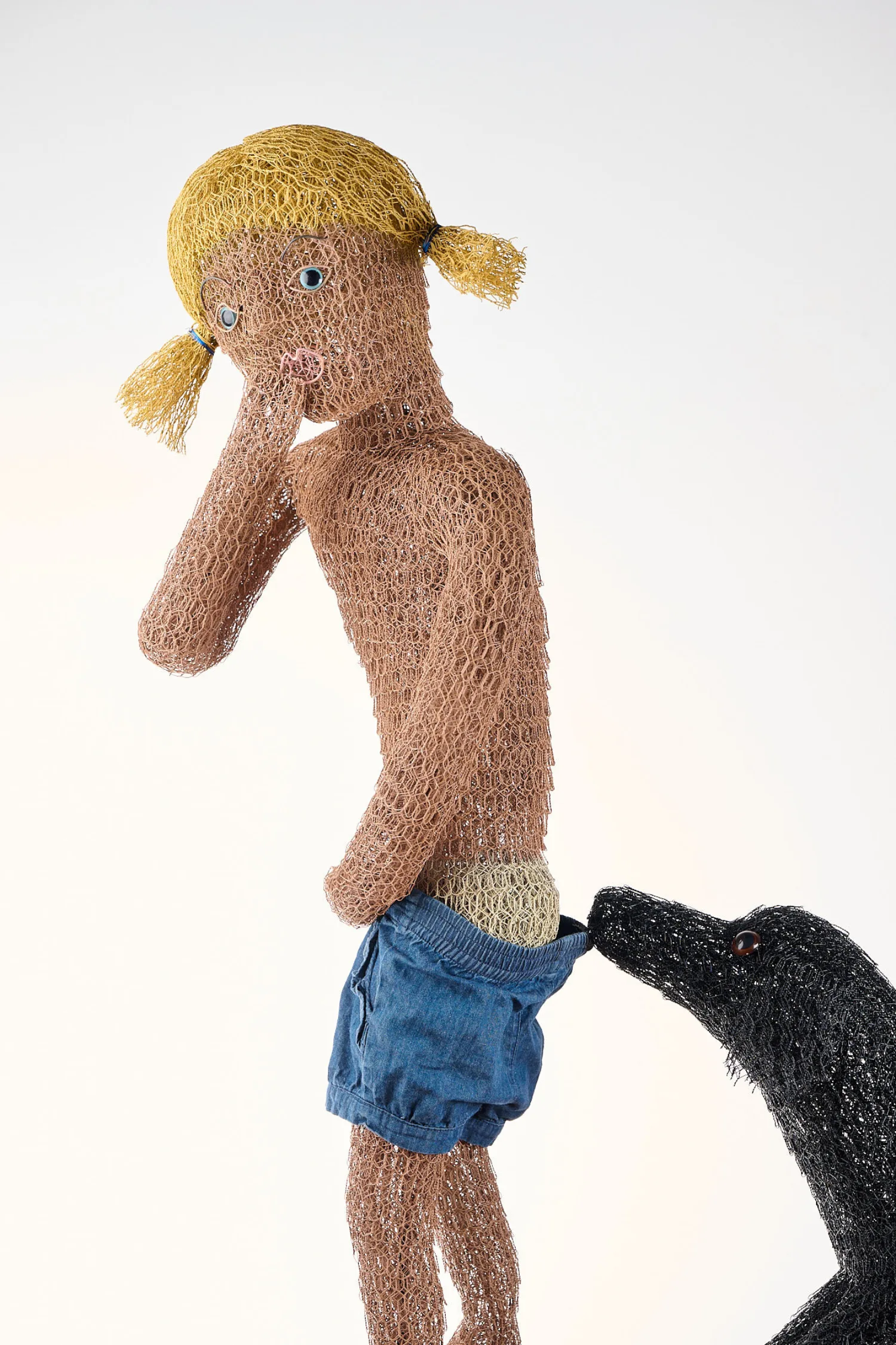 This classic advertisement from the 70's and 80's when a tan was a fashion accessory re-visited in wire .
