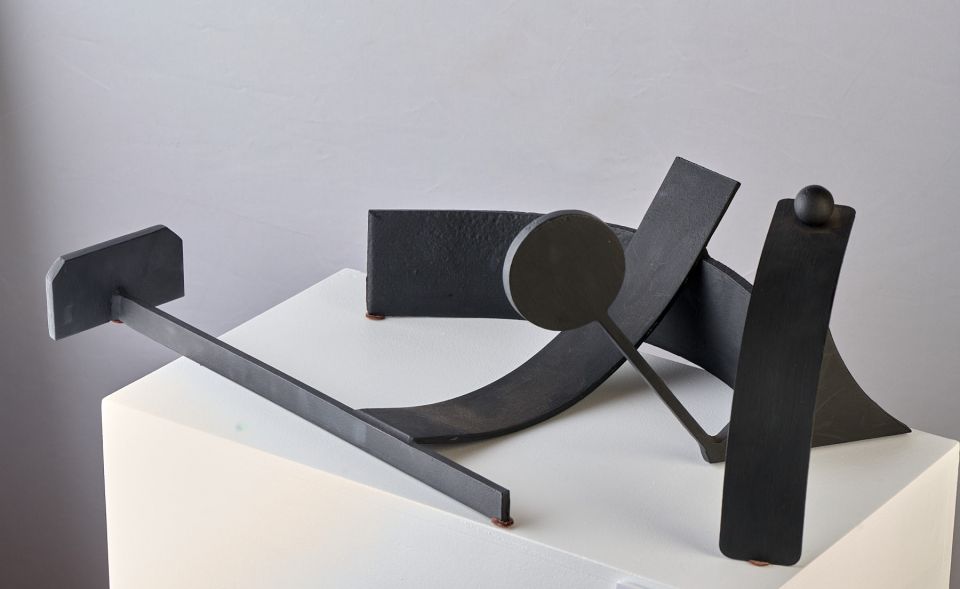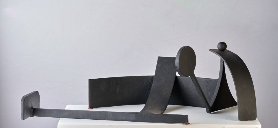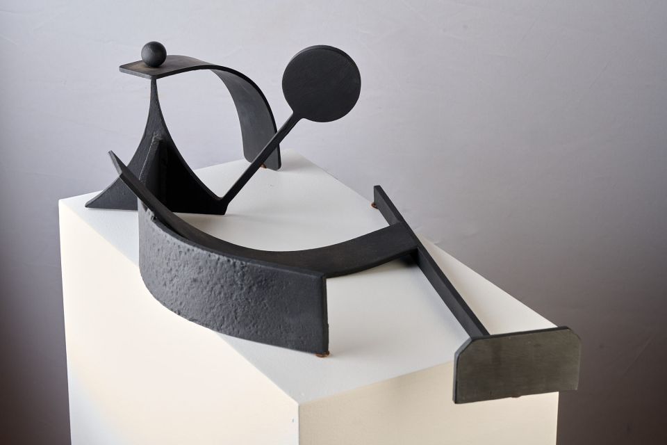 Influenced by Caro's table sculptures. Strong straight lines and soft, but definite curves, only on a smaller scale. I believe, the size is most important with this piece. I could not imagine it any larger.
