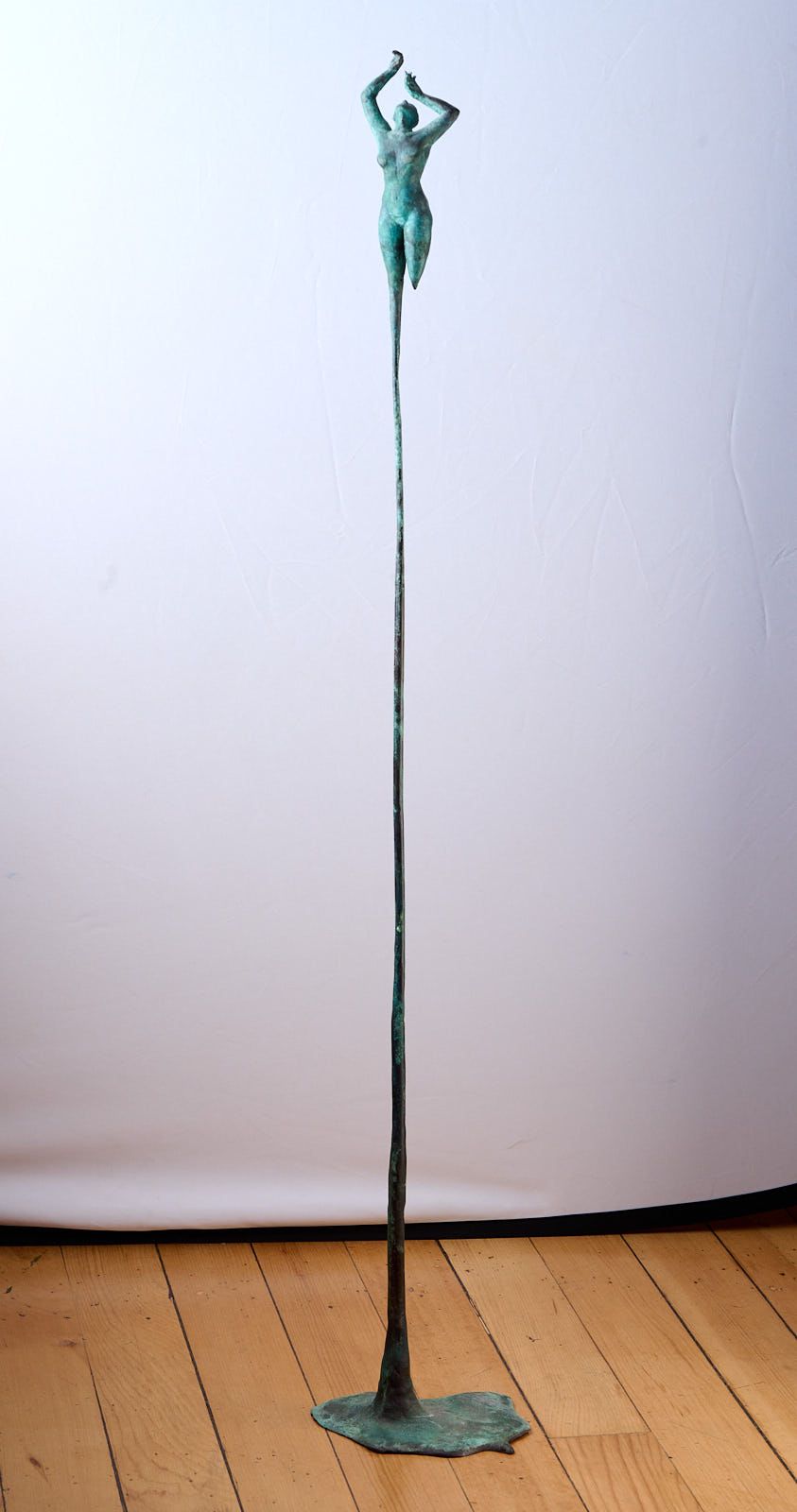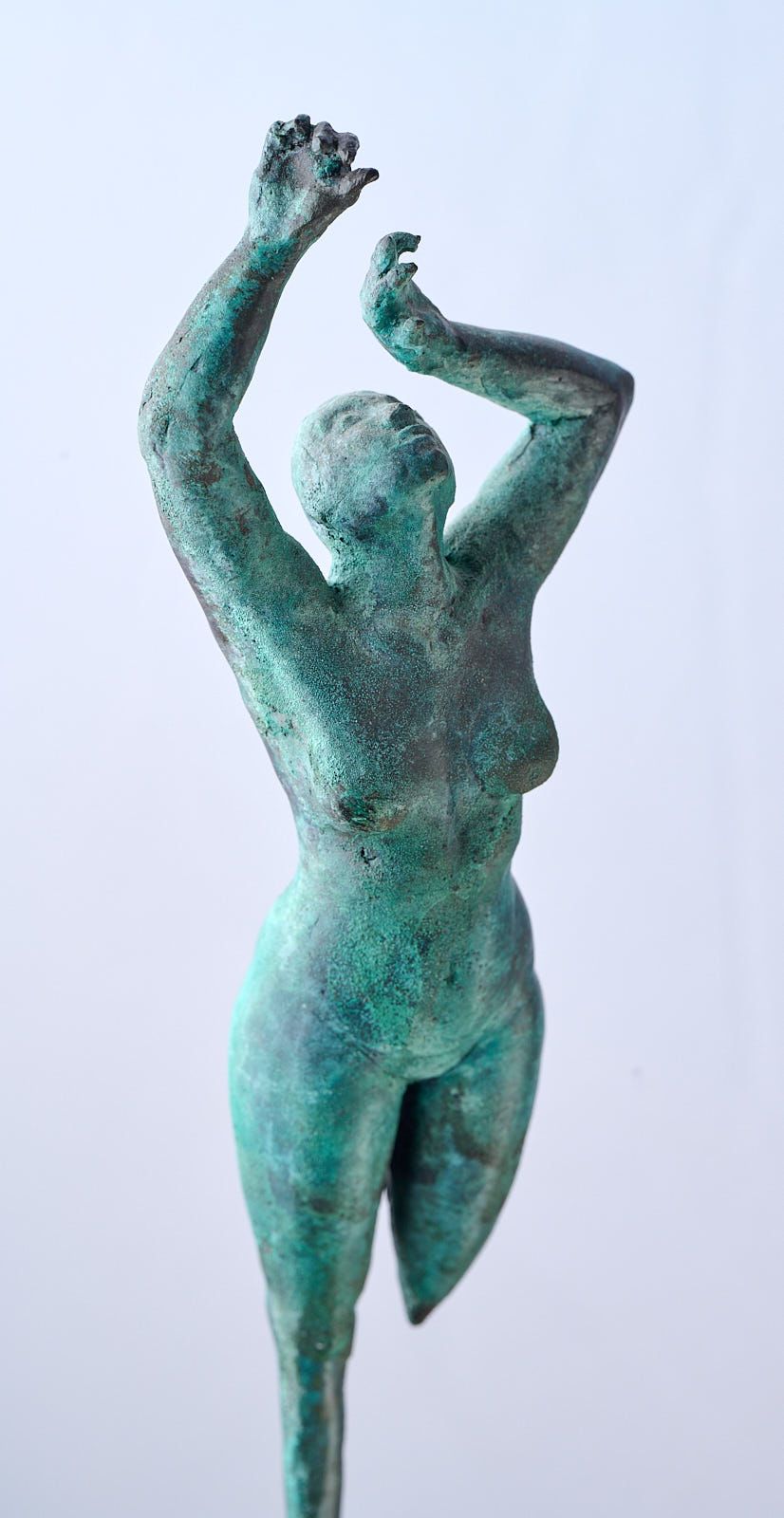 These sculptures explore the feeling of sinking. The moments in life where you feel as though you could simply stop and disappear, sink into the earth and cease existing or to exist elsewhere. They are representative of when time and life seemed to both slow and speed up all at once. These pieces are also inspired by the materiality of bronze, with its paradoxical blend of solidity and liquidity. I wanted to push the material to appear soft and liquid but also employ the sturdiness of the material to support the delicate structural shapes of these sculptures. The balance between these themes is further represented in the balancing element of ‘Descending’. Though It isn’t obvious from looking at it, the figure in this sculpture is balancing on the point of the spiked stand. To me each figure represents a different will. While the male figure willingling melts and wishes to disappear it is thrust up into the world, unable to wholy melt away. While the female figure reaches out to remain here while being pulled down into oblivion. Both figures fighting for what the other wishes to lose. These works represent the struggle between presence and absence, solidity and dissolution.