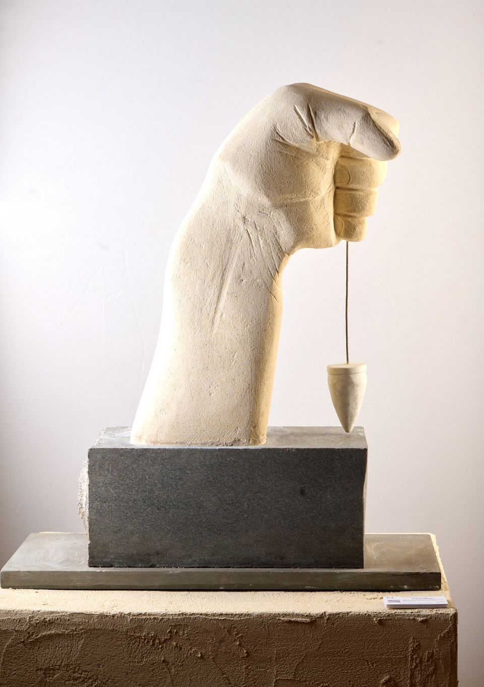 | Media | Hand: New Zealand limestone; Plumb Bob: Italian marble; steel cable; granite base | |
