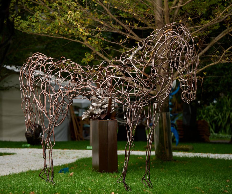 This mild steel sculpture showcases an exceptional level of craftsmanship, capturing the poised and regal nature of a royal horse with both boldness and tenderness. The artist’s sophisticated manipulation of the material allows for a nuanced representation of strength, grace, and power, conveying a dynamic form that feels simultaneously fierce and delicate. The exceptional attention to detail in both gesture and structure elevates the piece, making it a compelling and emotionally charged work of art.