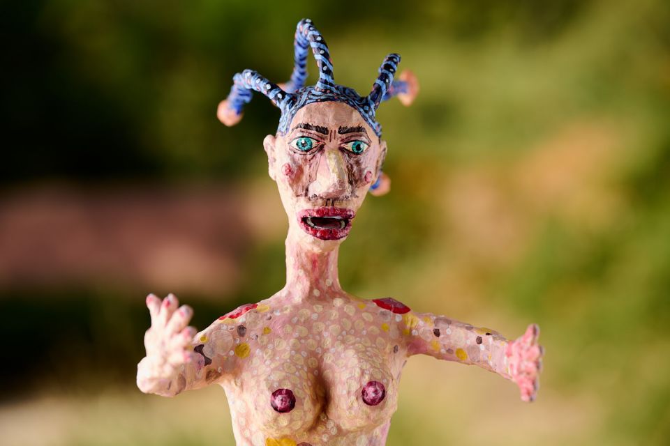 | Media | Paper mache, acrylic paint, wire | |