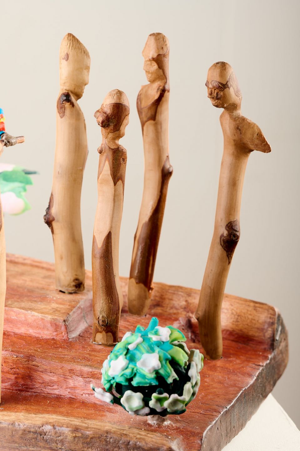 | Media | reclaimed redgum, manchurian pear, camellia wood, polymer clay | |
